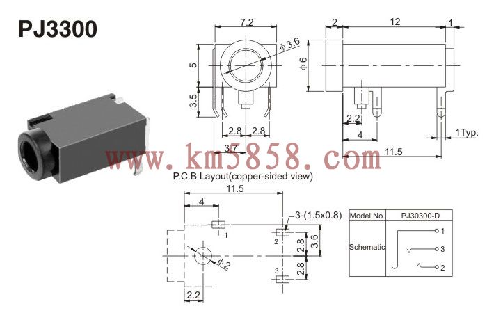 耳機(jī)插座 PJ3300插腳