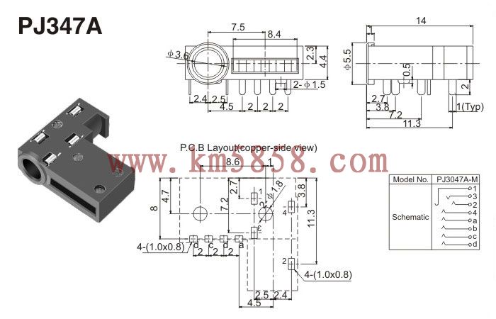 耳機(jī)插座 PJ347A插腳