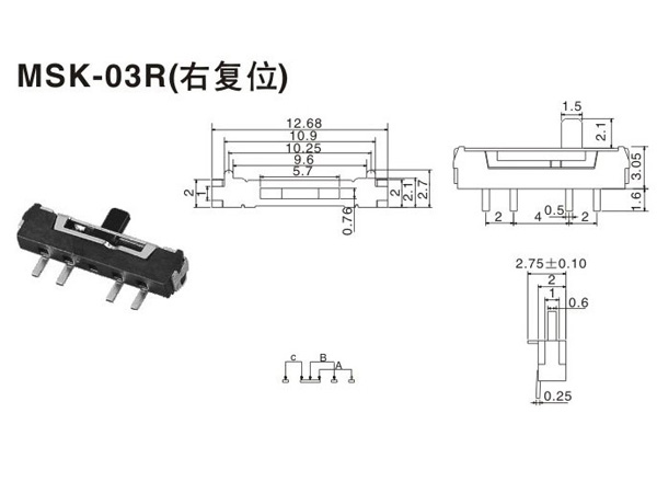 小撥動(dòng)開關(guān)MSK-03R (右復(fù)位).產(chǎn)品廣泛應(yīng)用于計(jì)算機(jī)周邊、多媒體音響、家電儀器、電子玩具、視聽設(shè)備、通訊設(shè)備等。